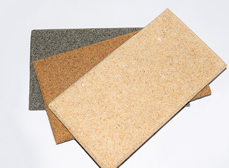 微粒材料是一種新型綠色裝飾材料,具備優異的聲學性和物理性能。該材料是以天然砂粒或經環保處理的固廢顆粒為骨料,以環保膠凝劑,通過壓振工藝,生產的具有大量相互連通的微小空隙的多孔材料。